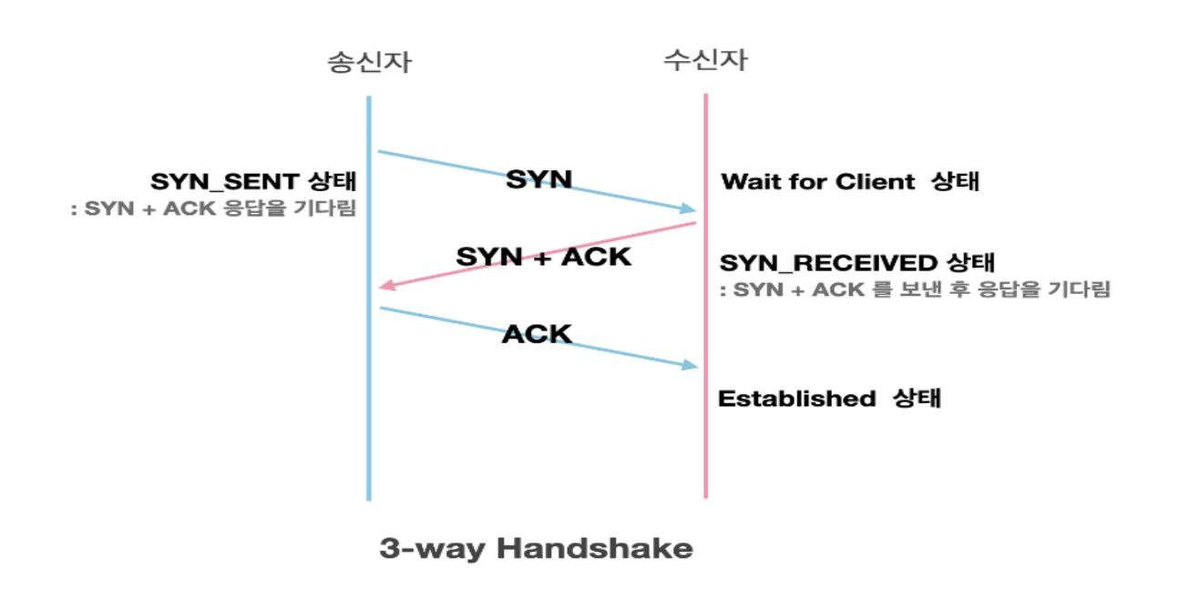 - 연결을 맺는 과정은 3 way handshake라고 부른다.