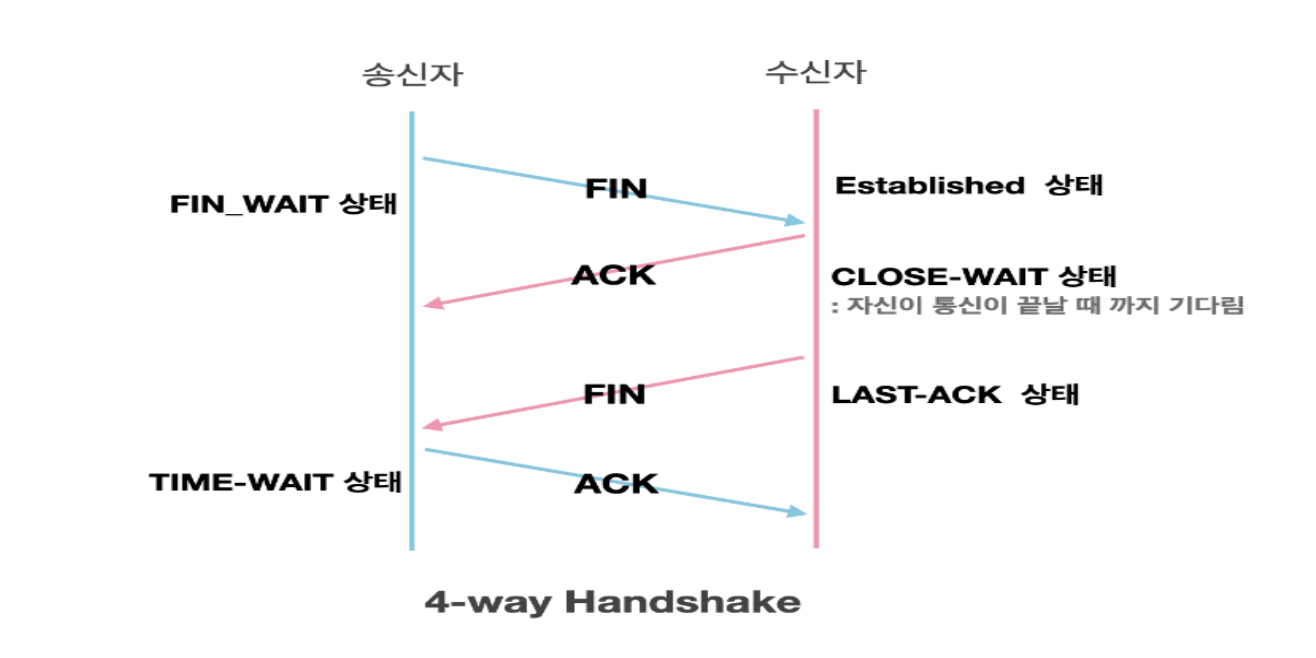 - 연결을 끊는 과정은 4 way handshake라고 부른다.